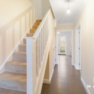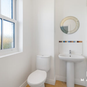 Upstairs are three well-proportioned bedrooms. The main bedroom features built-in wardrobes and a double en-suite shower room, complemented by a modern family bathroom.
