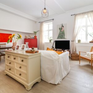 - Bright and spacious open-plan kitchen/living/dining room with high ceilings